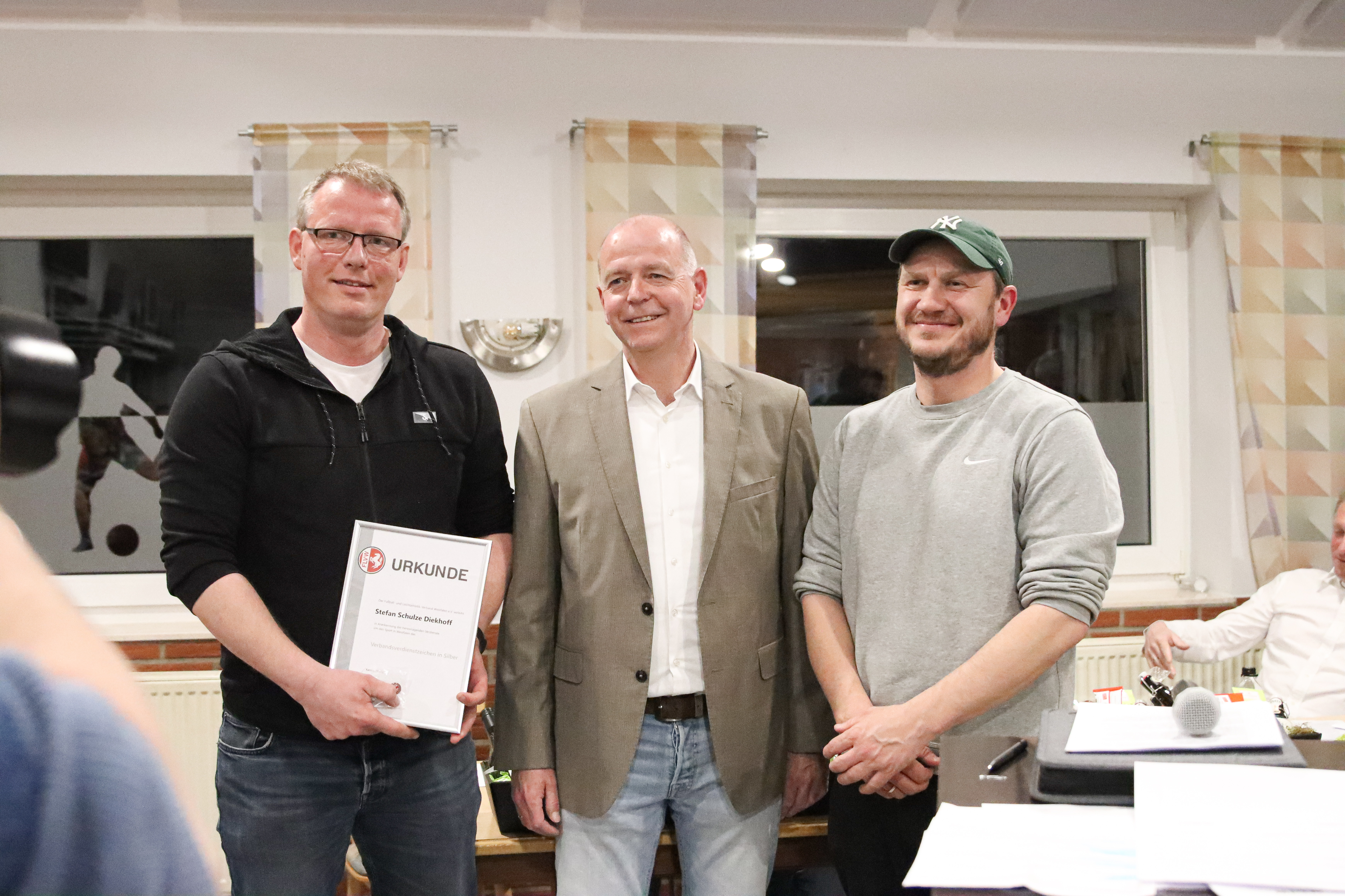 Emotional wurde es bei den Verabschiedungen verdienter Vorstandsmitglieder. Der sportliche Leiter Steve Ridder wurde nach sechs Jahren engagierter Tätigkeit aus dem Vorstand verabschiedet. Ebenso schied Geschäftsführer Stefan Schulze Diekhoff nach über zwölf Jahren aus seinem Amt aus und wurde für seine besonderen Verdienste, unter anderem mit dem Verdienstzeichen in Silber des FLVW, geehrt.