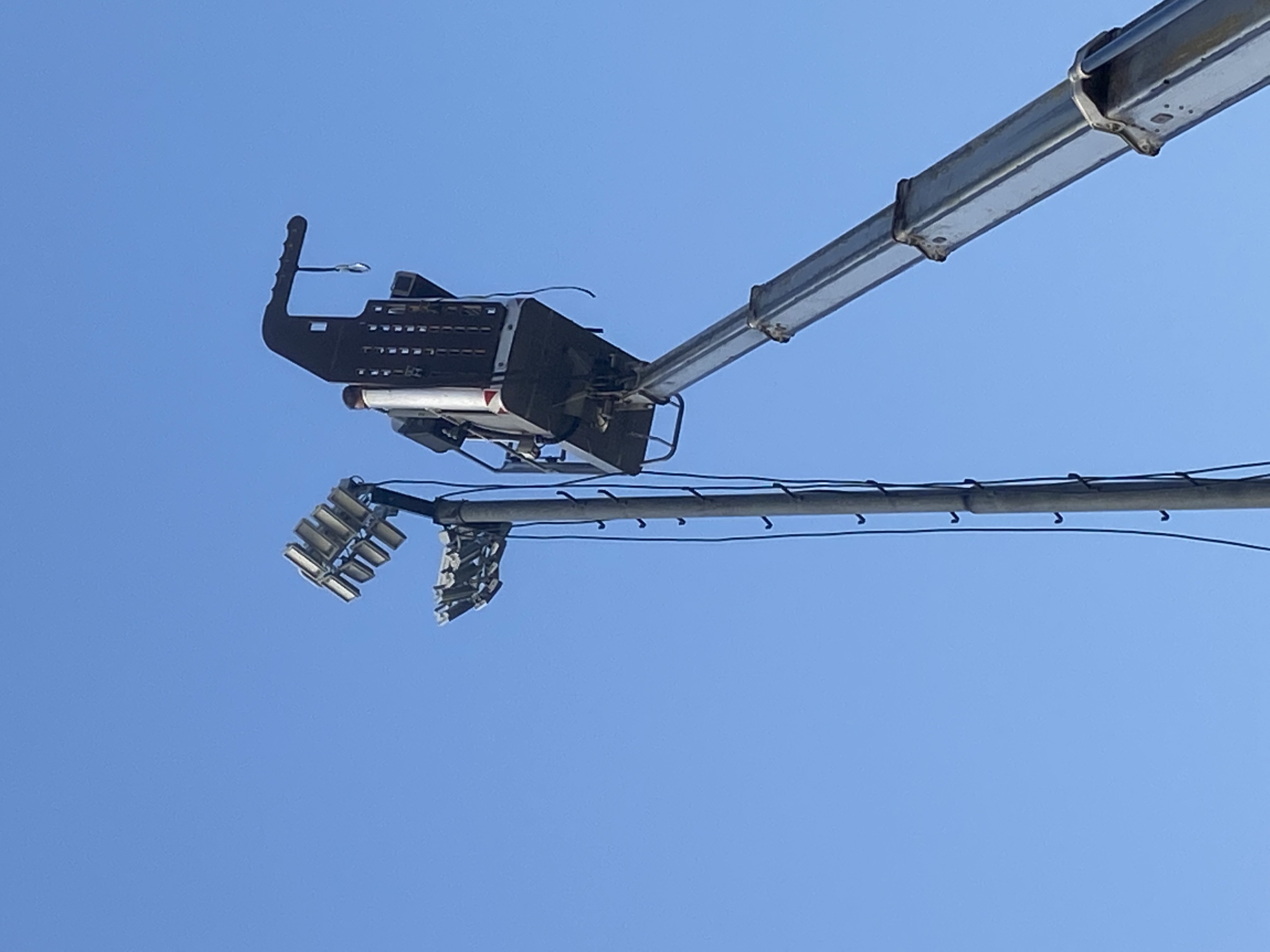 Bei Temperaturen um und unter dem Gefrierpunkt wurden die Flutlichtmasten im Auto-Deters-Stadion noch unmittelbar vor Weihnachten auf modernste LED-Technologie umgerüstet. Die Lumosa GmbH, ein Flutlicht-Spezialist, der u. a. auch schon die Schauinsland-Arena des MSV Duisburg ausgestattet hat, tauschte über zwei Tage lang sowohl die alten Halogen-Leuchten des Trainingsplatzes als auch die des (Noch-) Aschenplatzes.