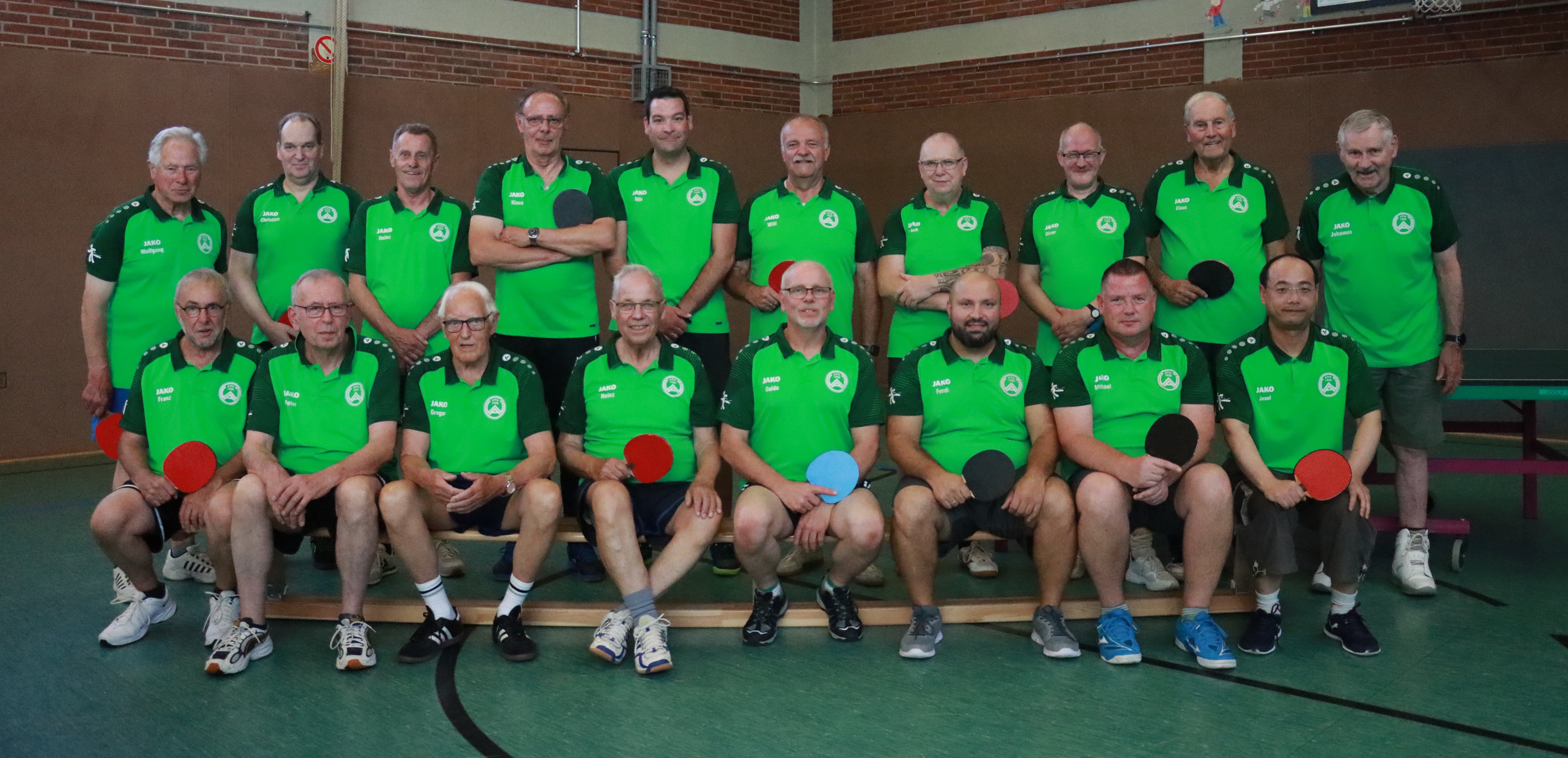 Unsere Tischtennis-Abteilung ist für keinen Meisterschafts-Spielbetrieb gemeldet. Dafür nehmen wir mit zwischenzeitlich 3 Mannschaften am Tischtennis-Betriebssport der Stadt Rheine teil. Die Turnierspiele werden im Zeitraum von Oktober bis Mai in zwei Ligen ausgetragen. Mit neuen Trikots für die Saison ausgerüstet hat unsere 2. Mannschaft in dieser Saison den Titel in ihrer Liga als Tabellenzweiter nur knapp verpasst.